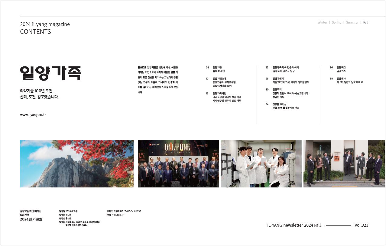 일양가족지는 일양약품 임직원들의 소식을 전하는 소식지입니다.